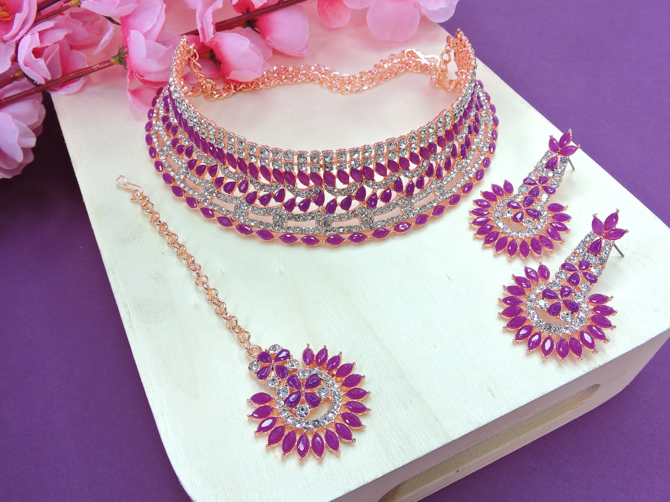 Product Details: 1 Necklace::1 Pair of Earring::1 Maang Tikka