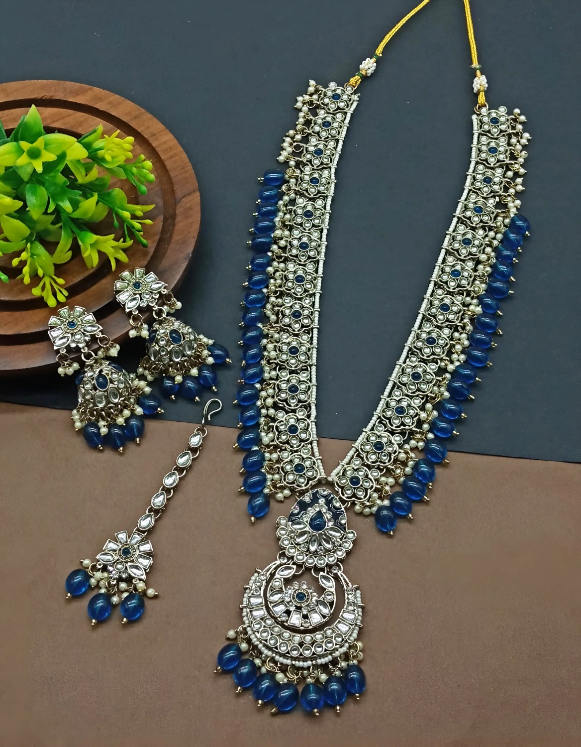 Admirable Alloy & Stone & Moti Blue Necklace