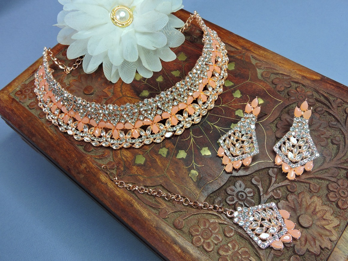 Product Details: 1 Necklace::1 Pair of Earring::1 Maang Tikka
