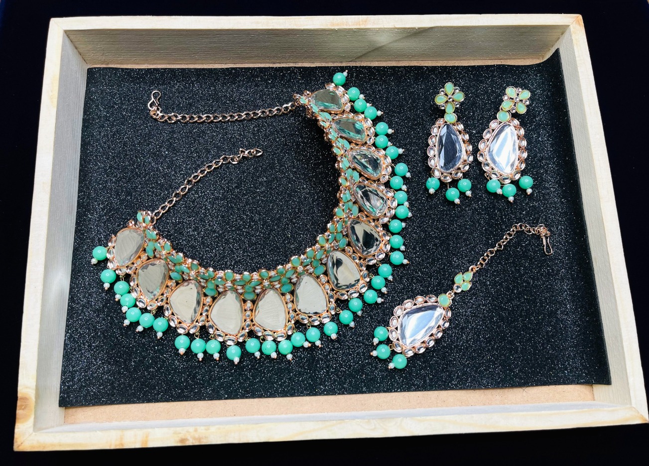 Product Details: 1 Necklace::1 Pair of Earring::1 Maang Tikka