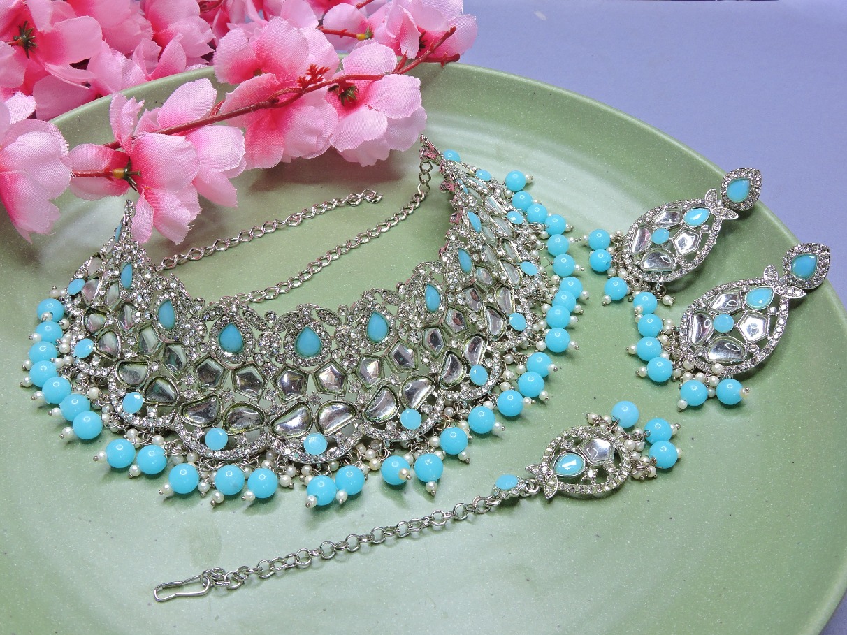 Product Details: 1 Necklace::1 Pair of Earring::1 Maang Tikka