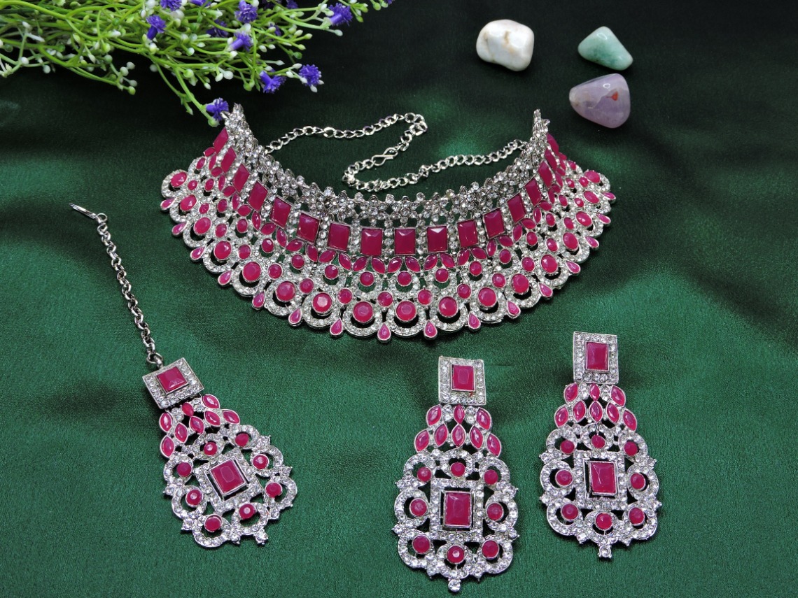 Product Details: 1 Necklace::1 Pair of Earring::1 Maang Tikka