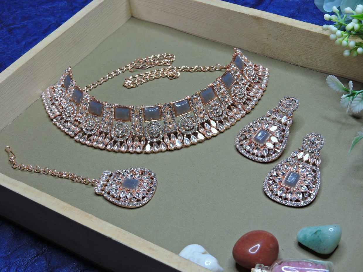 Product Details: 1 Necklace::1 Pair of Earring::1 Maang Tikka