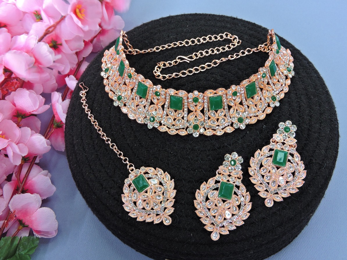 Product Details: 1 Necklace::1 Pair of Earring::1 Maang Tikka
