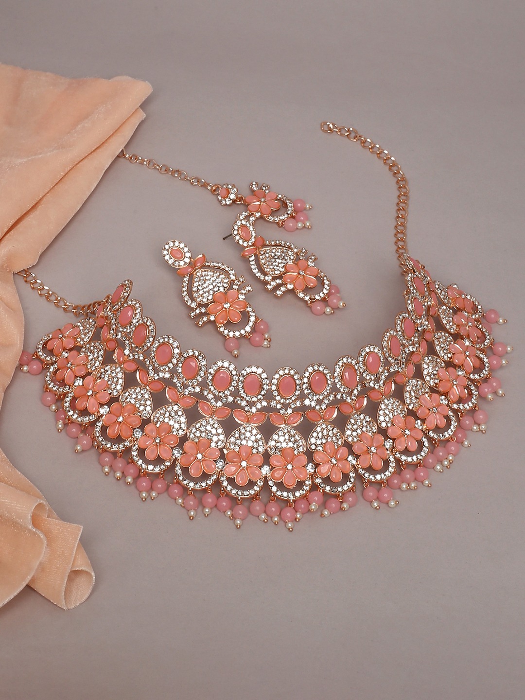 Product Details: 1 Necklace::1 Pair of Earring::1 Maang Tikka