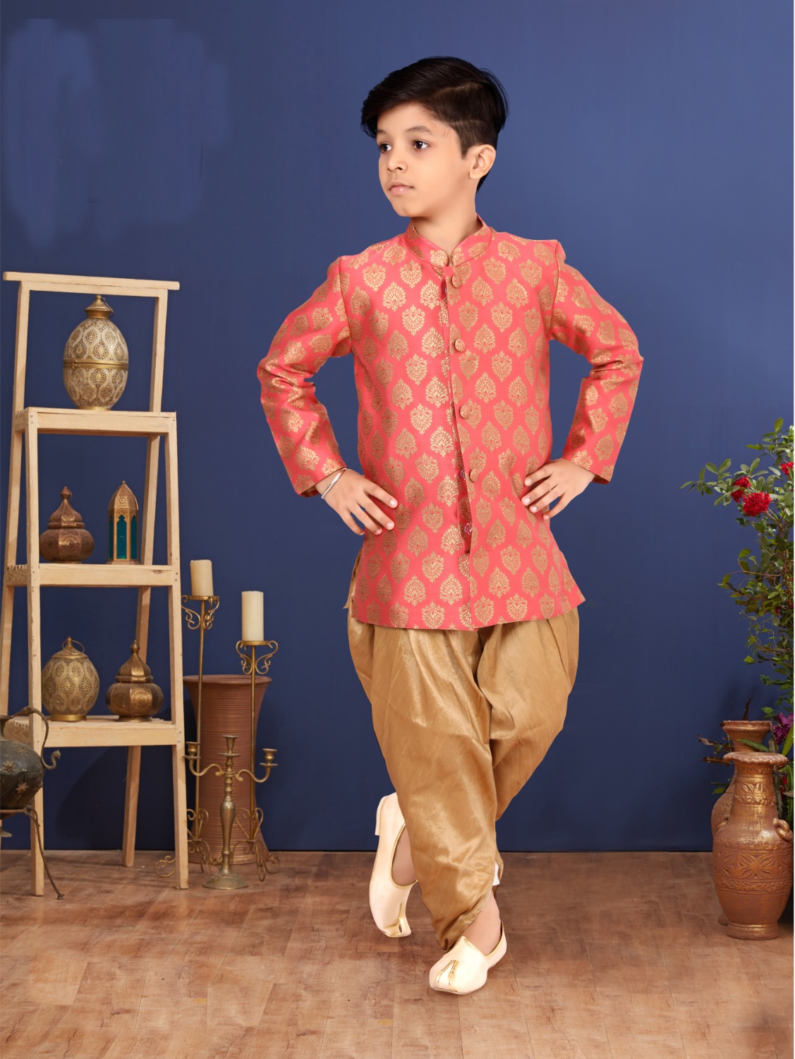 Amazing Jacquard Silk Pink Indo Western