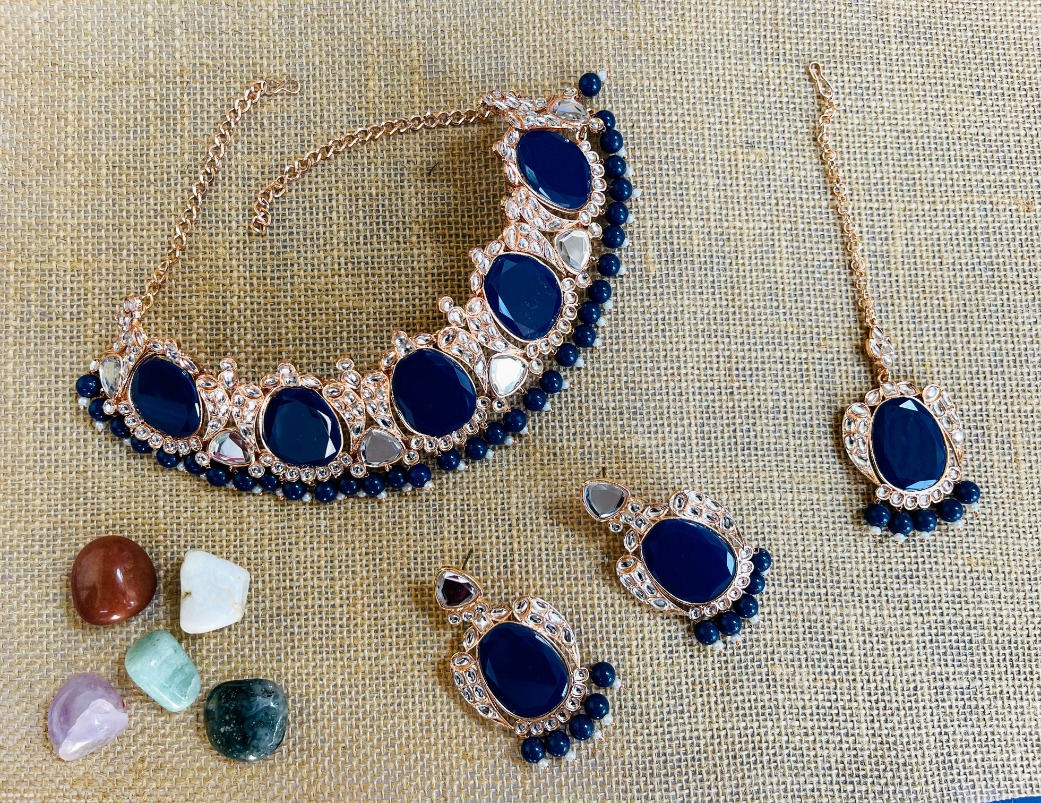 Product Details: 1 Necklace::1 Pair of Earring::1 Maang Tikka