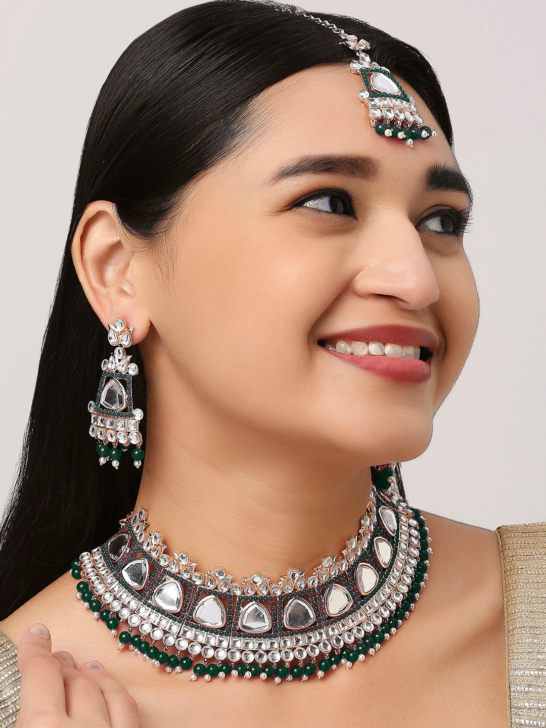 Product Details: 1 Necklace::1 Pair of Earring::1 Maang Tikka