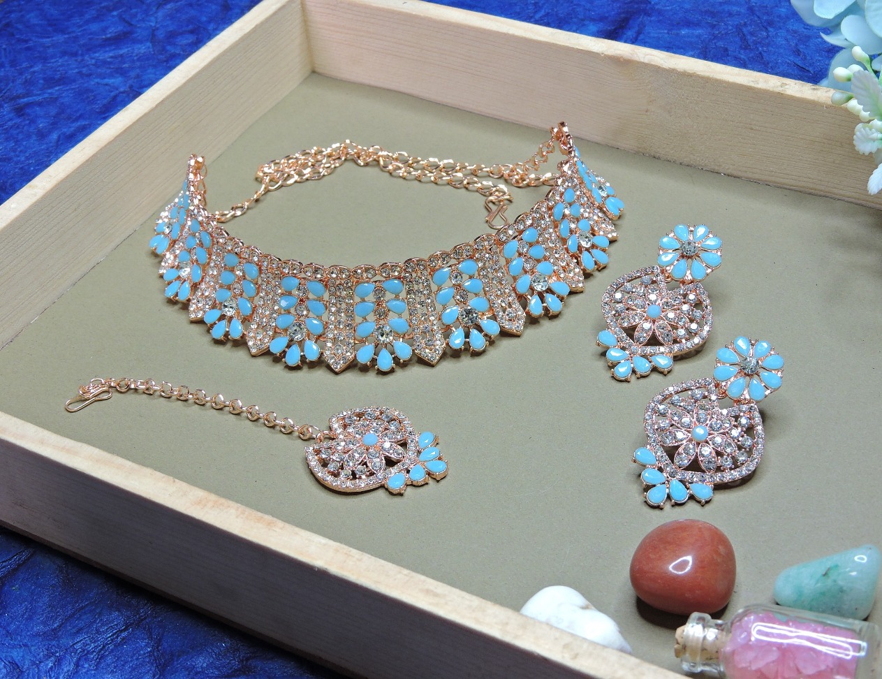 Product Details: 1 Necklace::1 Pair of Earring::1 Maang Tikka