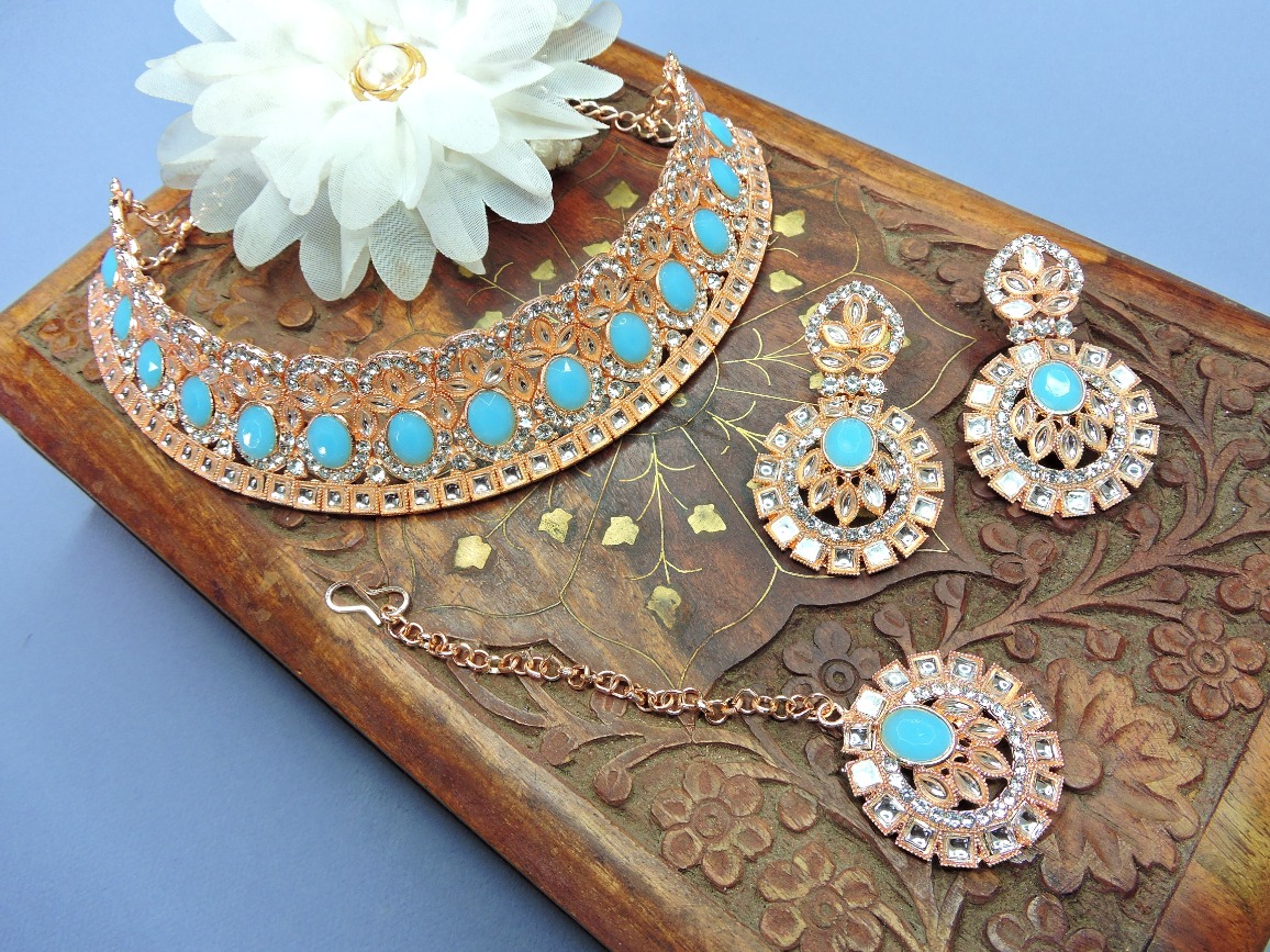 Product Details: 1 Necklace::1 Pair of Earring::1 Maang Tikka