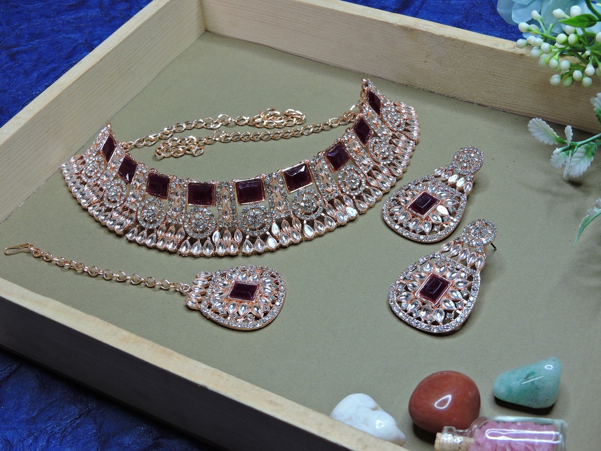 Product Details: 1 Necklace::1 Pair of Earring::1 Maang Tikka