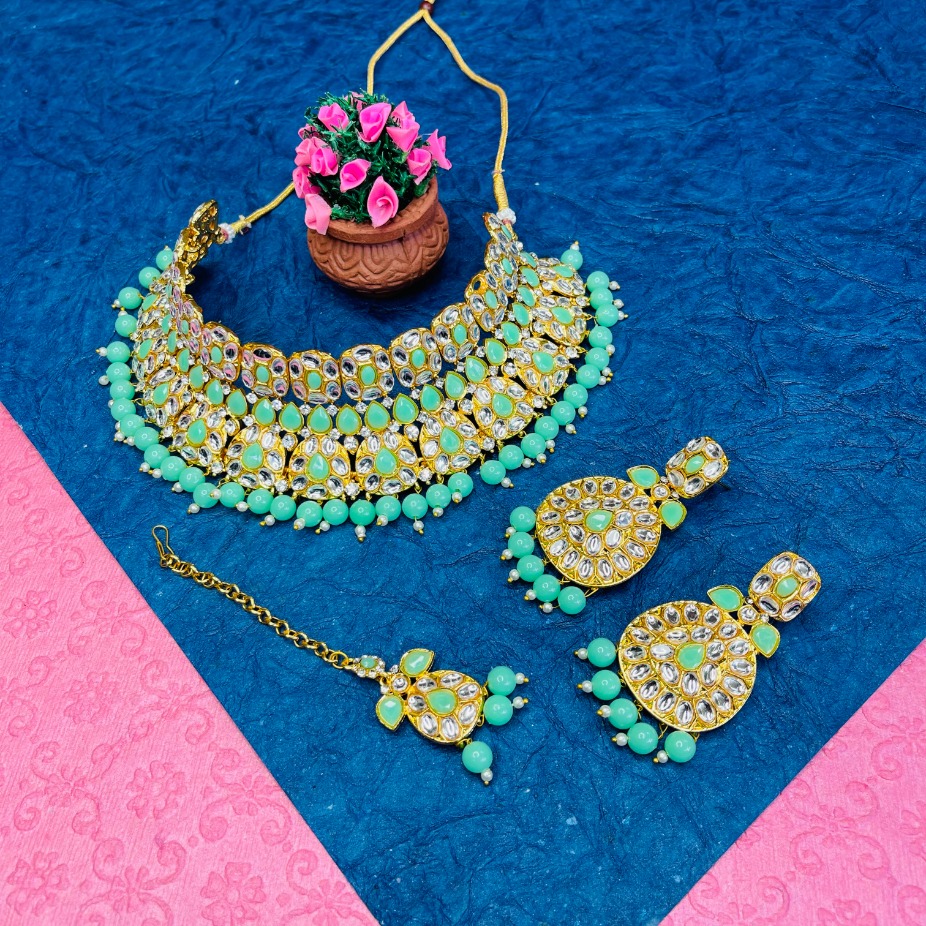 Product Details: 1 Necklace::1 Pair of Earring::1 Maang Tikka