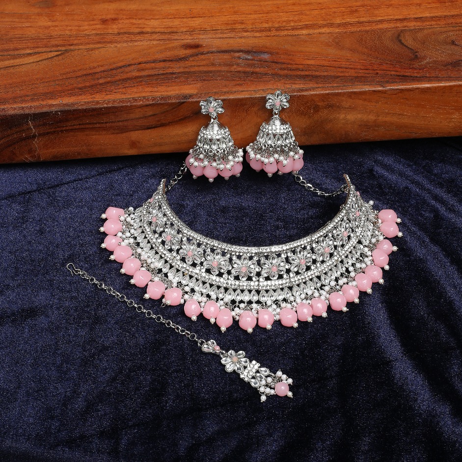 Product Details: 1 Necklace::1 Pair of Earring::1 Maang Tikka