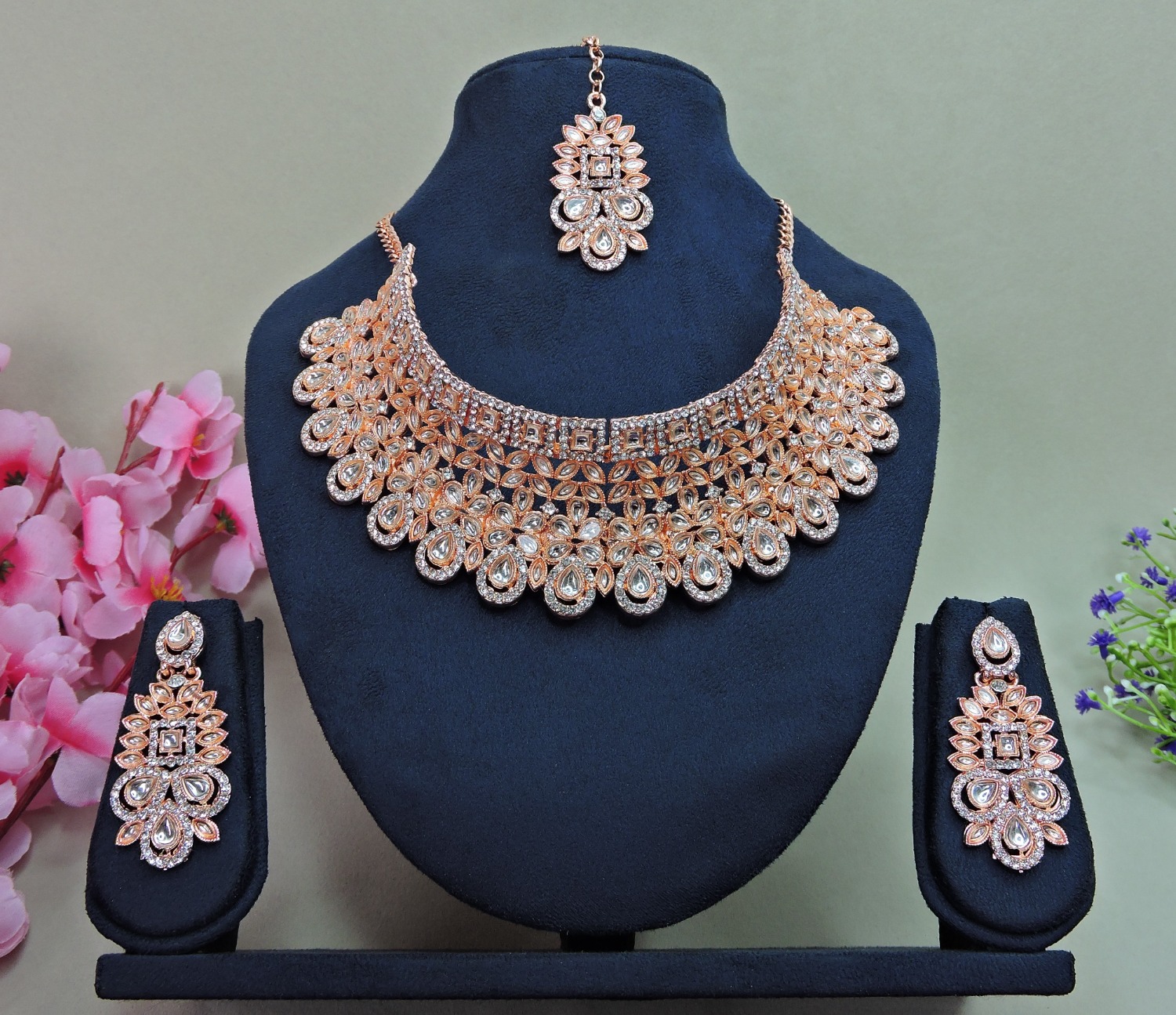 Details: 1 Necklace, 1 Pair Earrings, 1 Mang Tikka