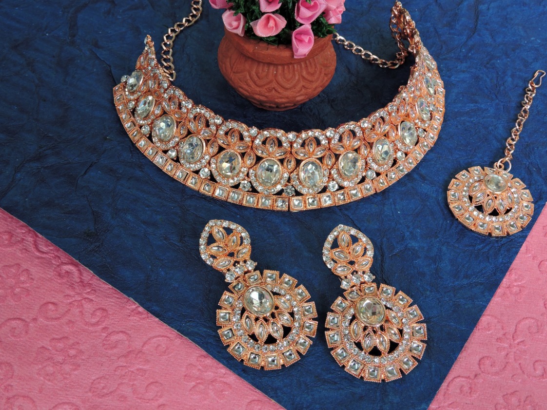 Product Details: 1 Necklace::1 Pair of Earring::1 Maang Tikka