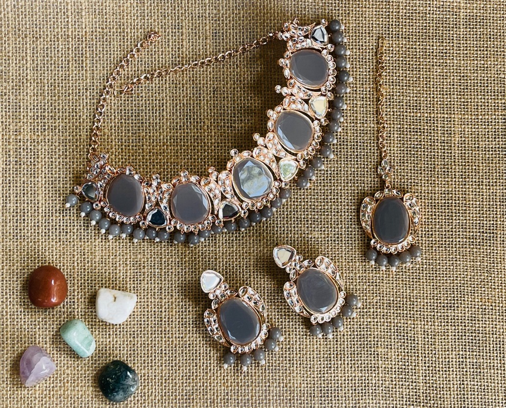 Product Details: 1 Necklace::1 Pair of Earring::1 Maang Tikka