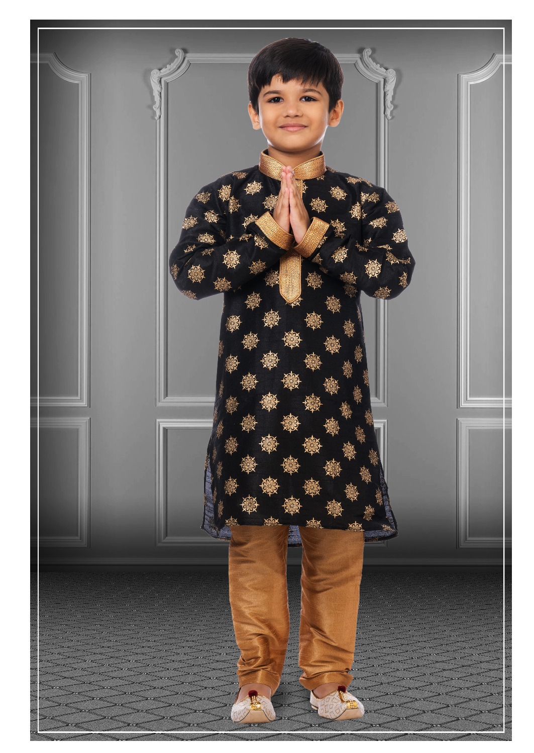 Bewitching Printed Dhupion Silk Black Kurta Pajama