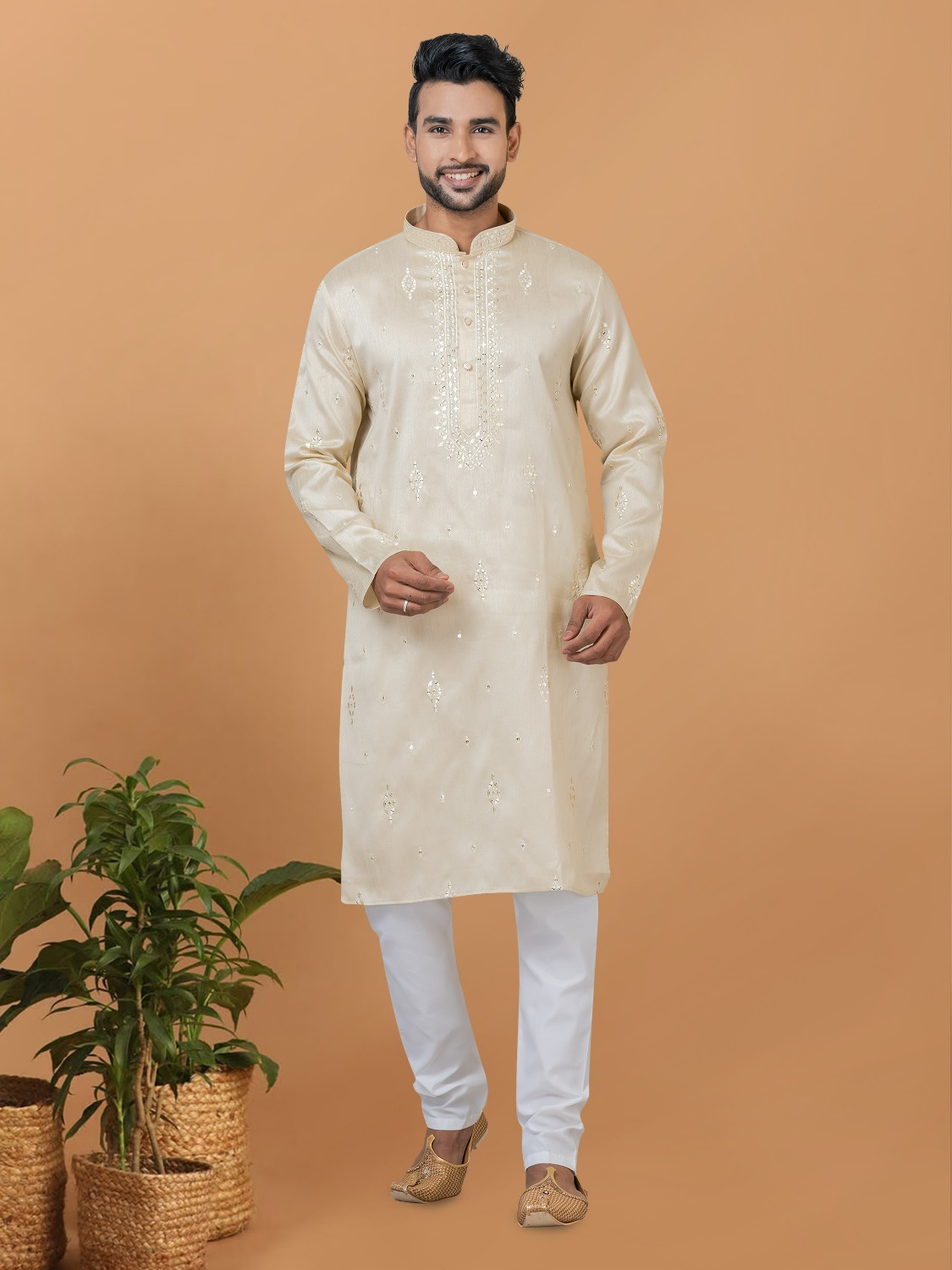 Bewitching Silk Beige Kurta Pajama