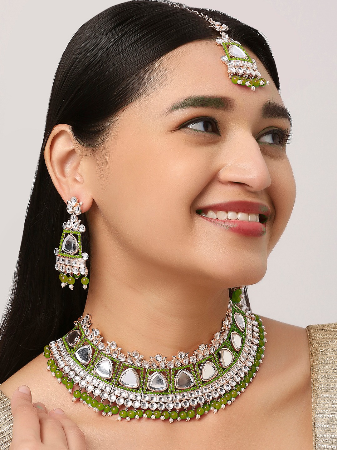 Product Details: 1 Necklace::1 Pair of Earring::1 Maang Tikka