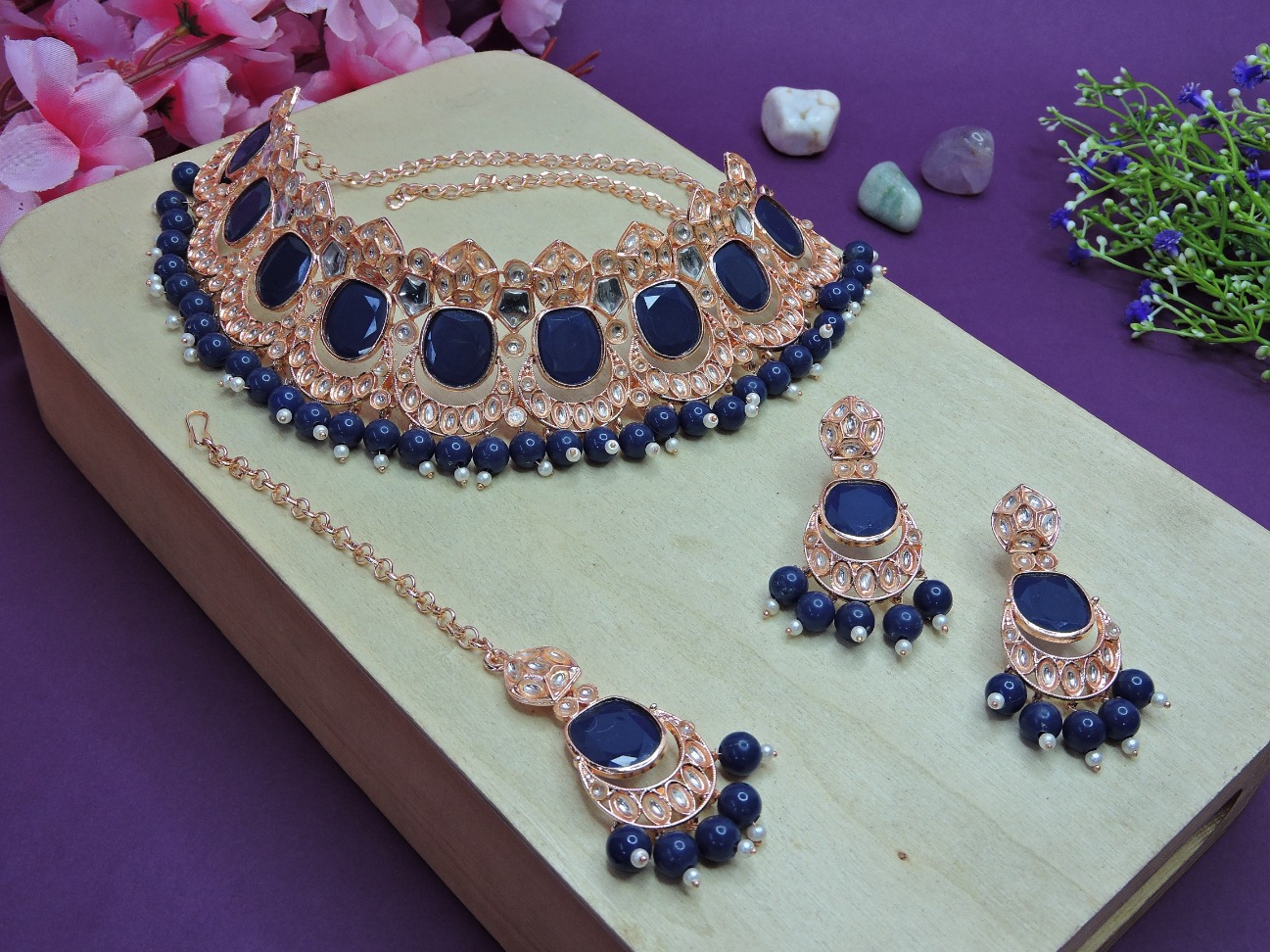 Product Details: 1 Necklace::1 Pair of Earring::1 Maang Tikka