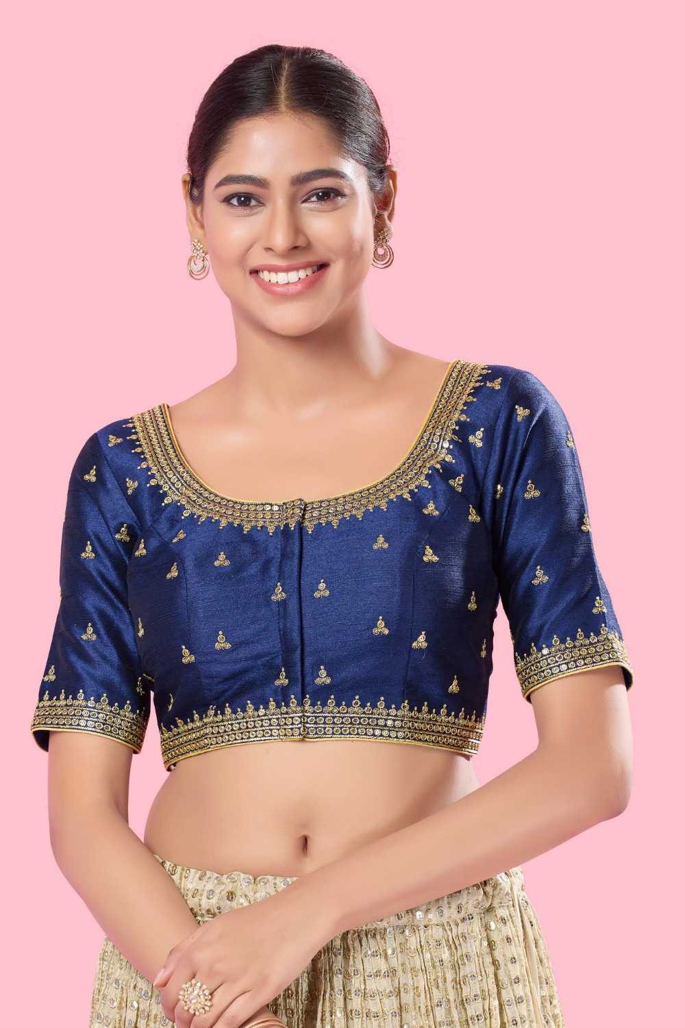 Charming Mulbury Silk Navy Blue Readymade Blouse