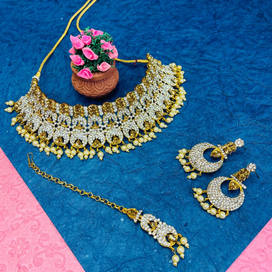 Product Details: 1 Necklace::1 Pair of Earring::1 Maang Tikka