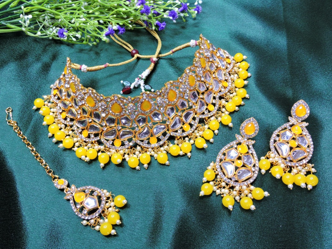 Product Details: 1 Necklace::1 Pair of Earring::1 Maang Tikka