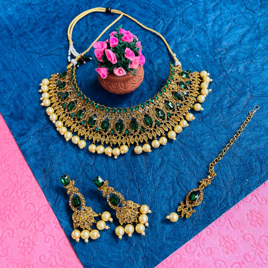 Product Details: 1 Necklace::1 Pair of Earring::1 Maang Tikka