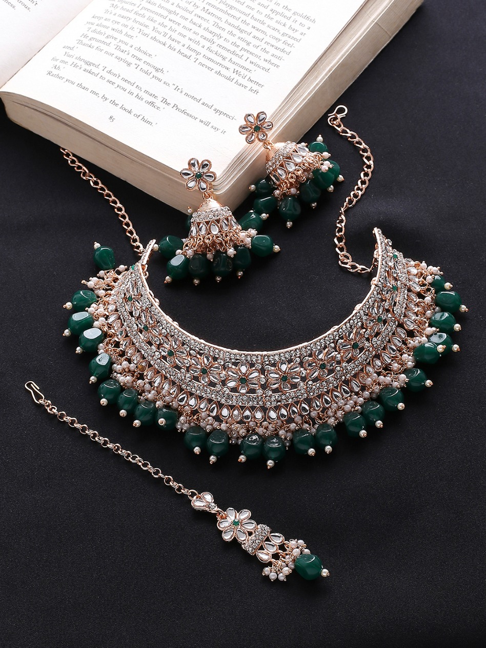 Product Details: 1 Necklace::1 Pair of Earring::1 Maang Tikka