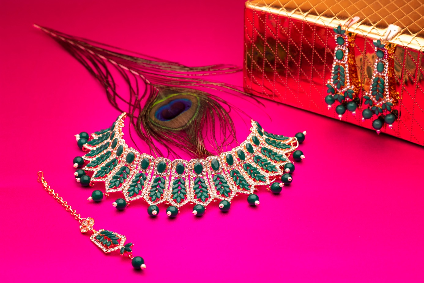 Product Details: 1 Necklace::1 Pair of Earring::1 Maang Tikka