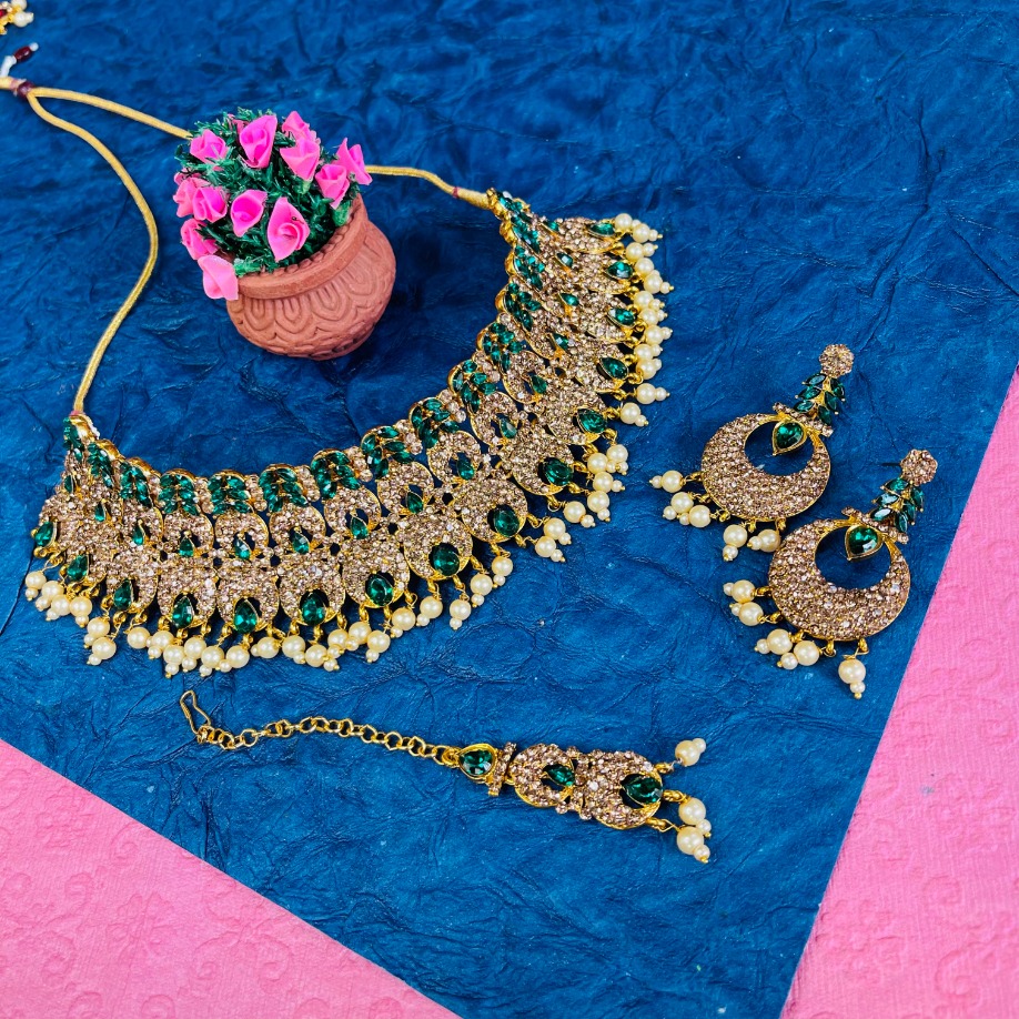 Product Details: 1 Necklace::1 Pair of Earring::1 Maang Tikka