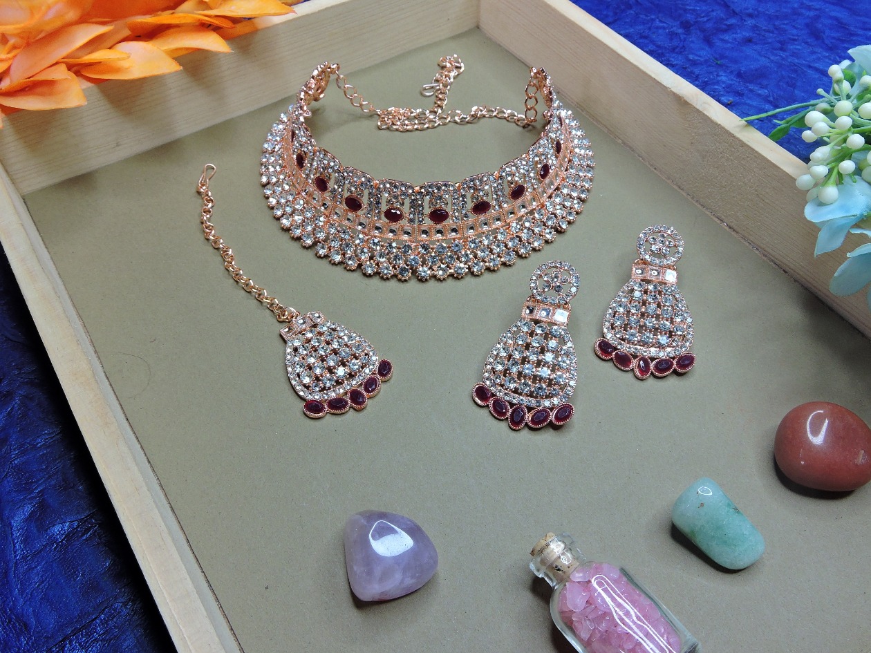 Product Details: 1 Necklace::1 Pair of Earring::1 Maang Tikka
