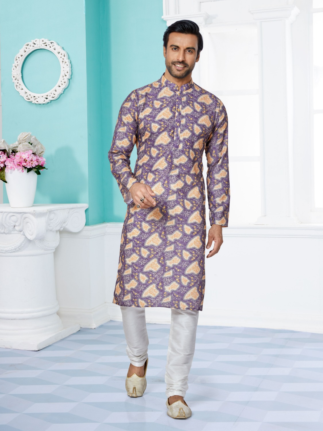Elegant Mono Fabric with Digital Print & Sequence Work Purple Kurta Pajama