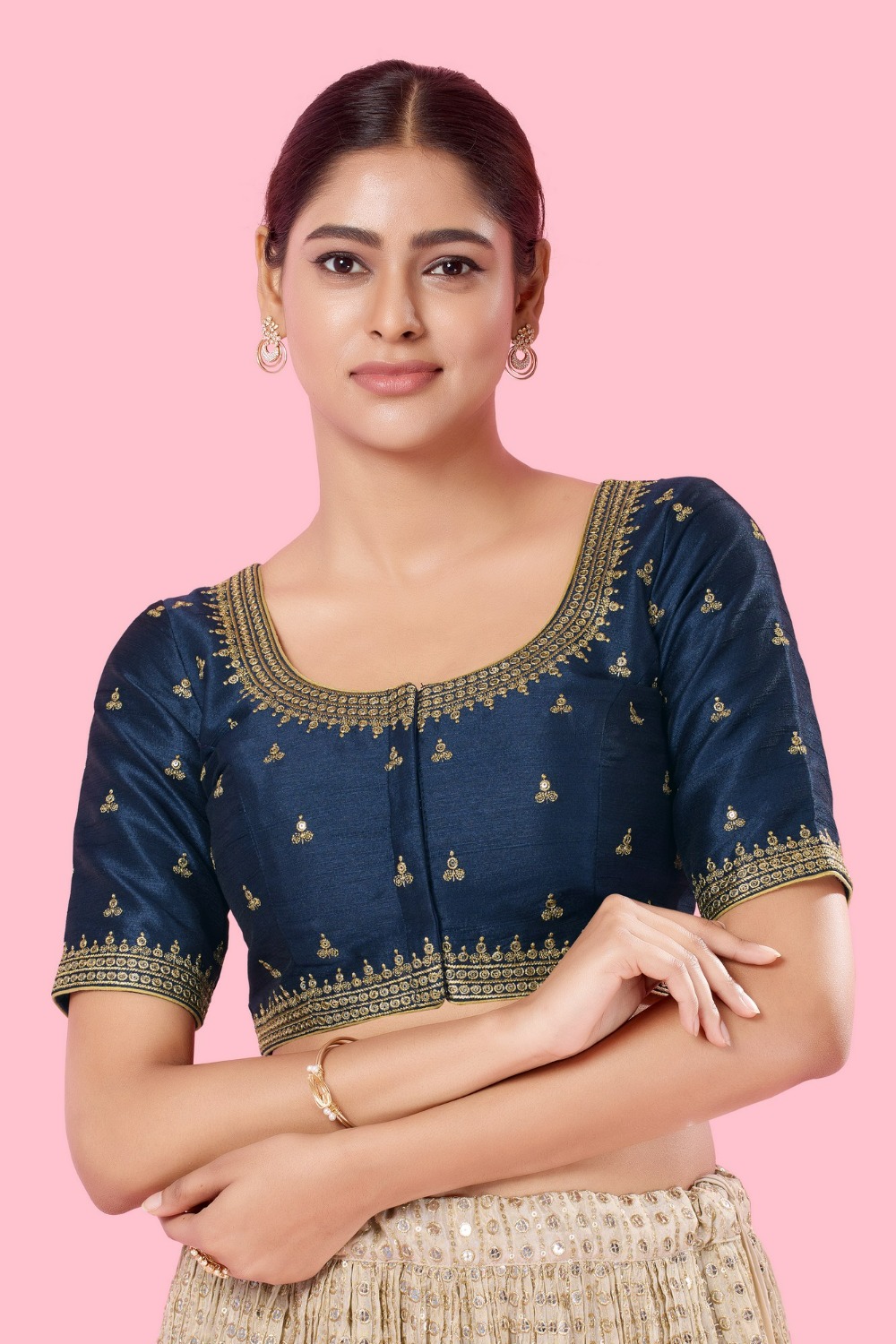 Elegant Mulbury Silk Navy Blue Readymade Blouse