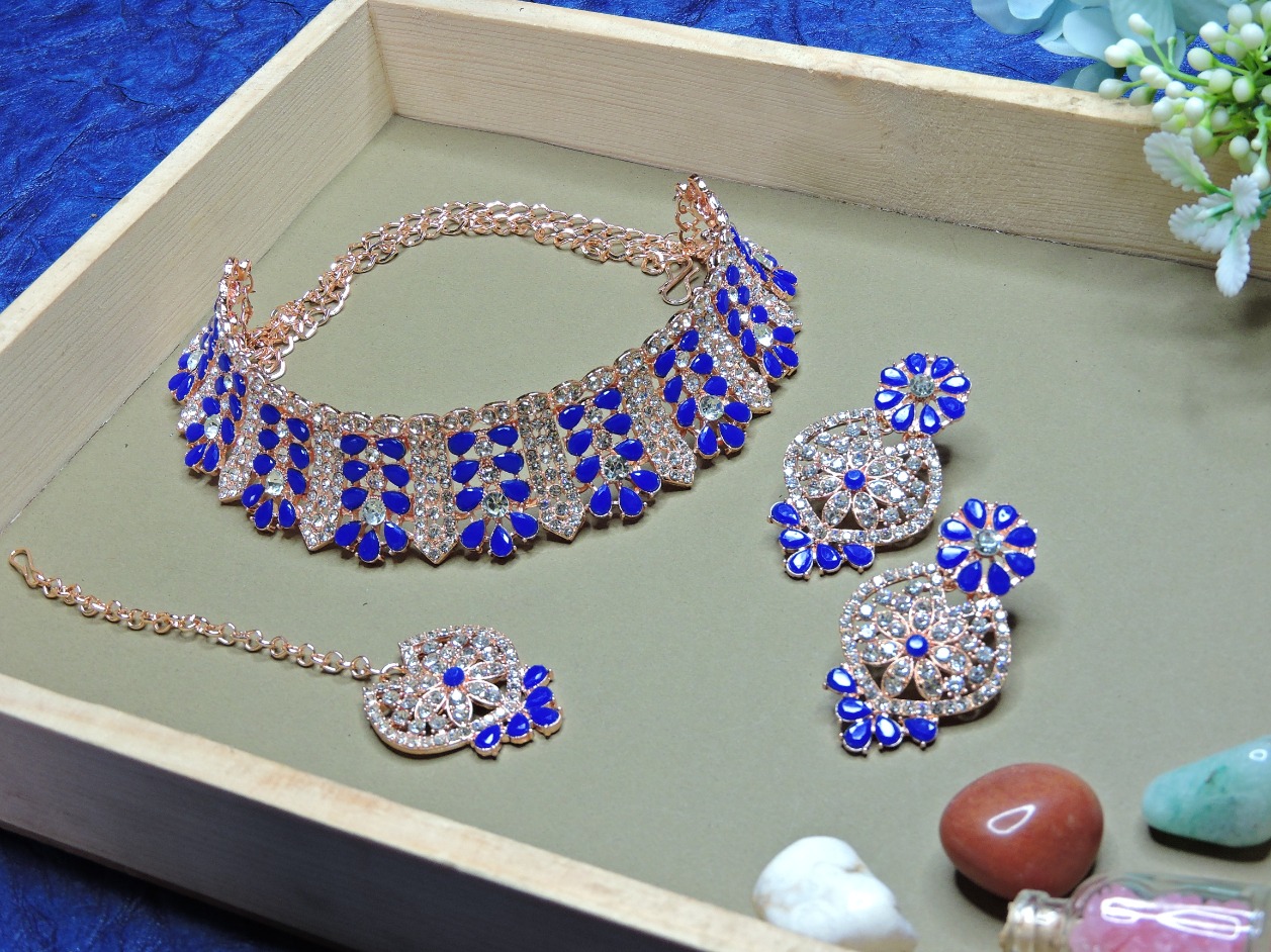 Product Details: 1 Necklace::1 Pair of Earring::1 Maang Tikka