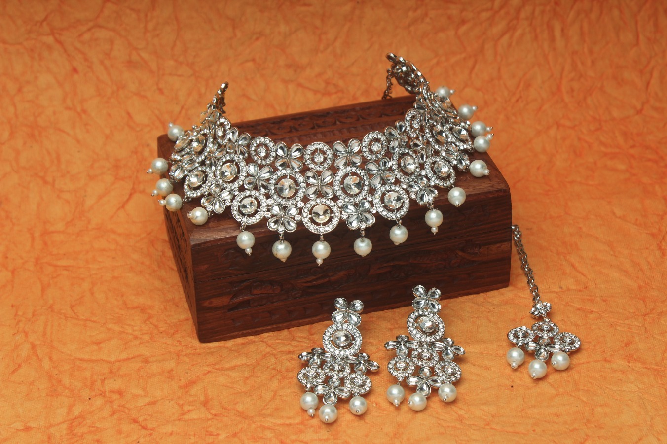 Product Details: 1 Necklace::1 Pair of Earring::1 Maang Tikka