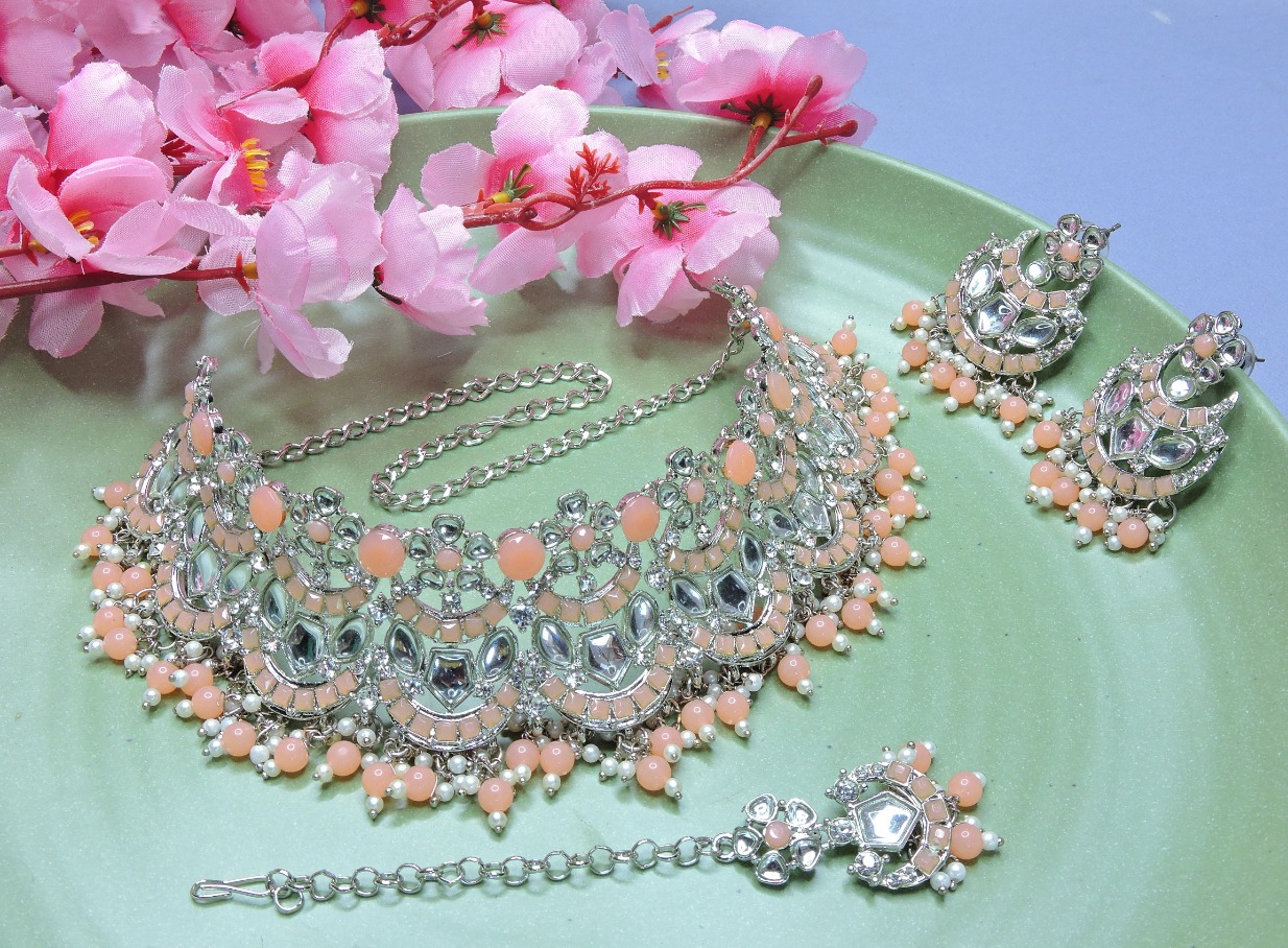 Product Details: 1 Necklace::1 Pair of Earring::1 Maang Tikka