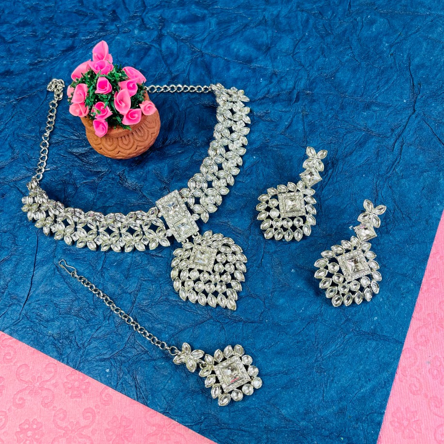 Product Details: 1 Necklace::1 Pair of Earring::1 Maang Tikka