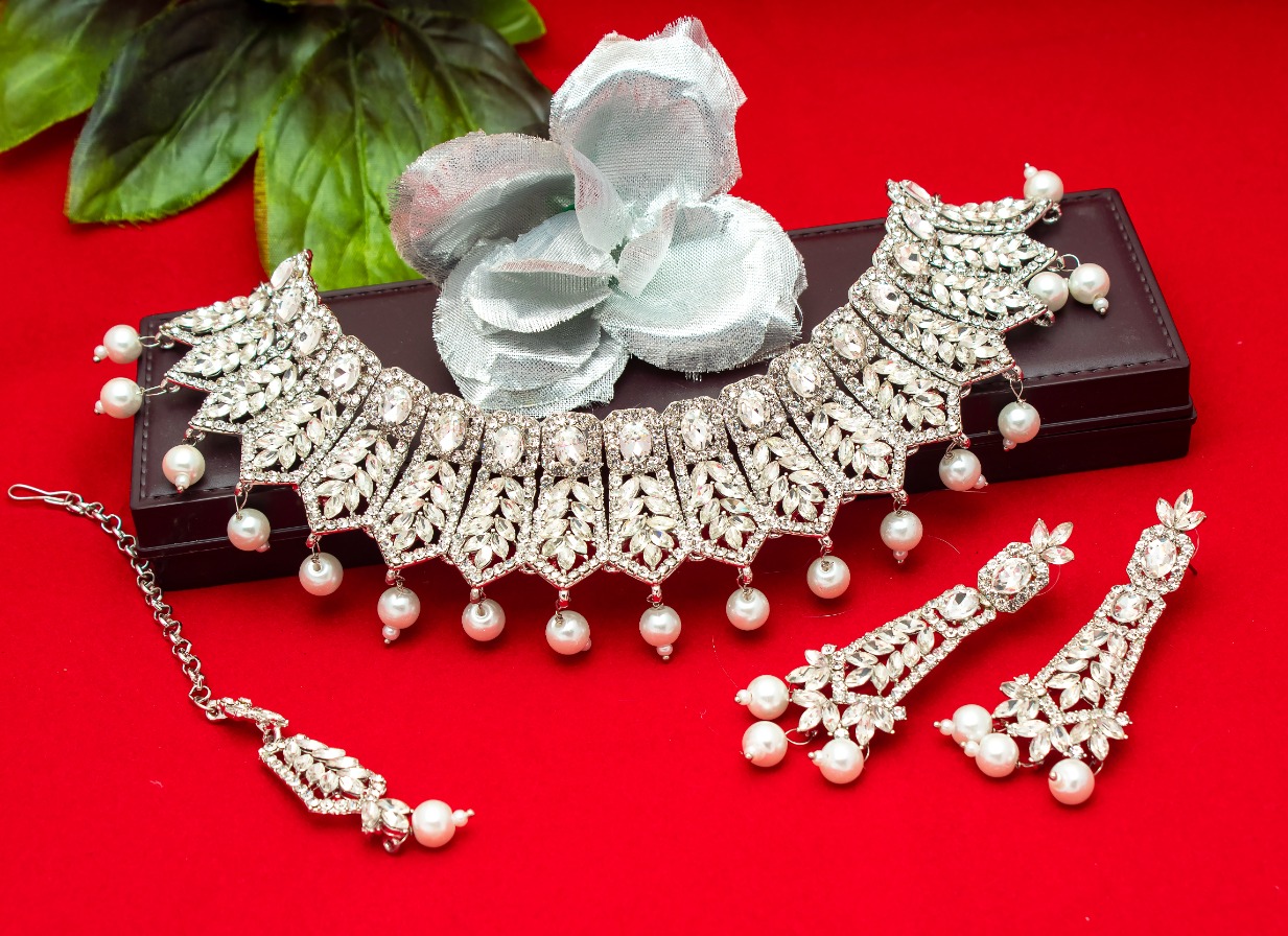 Product Details: 1 Necklace::1 Pair of Earring::1 Maang Tikka