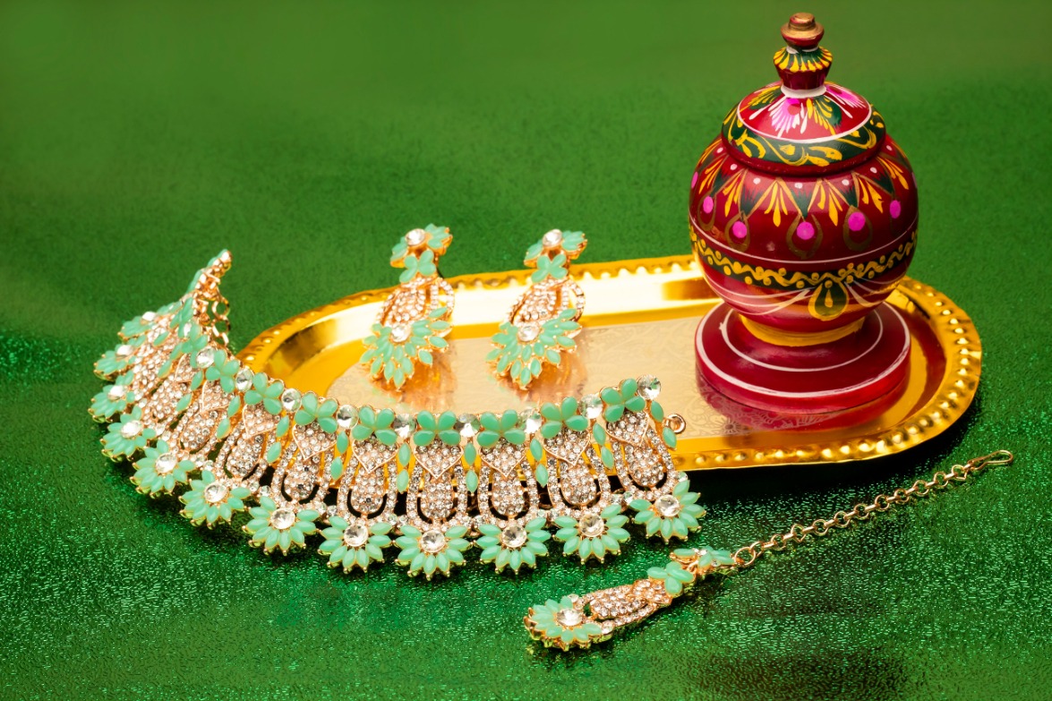 Product Details: 1 Necklace::1 Pair of Earring::1 Maang Tikka