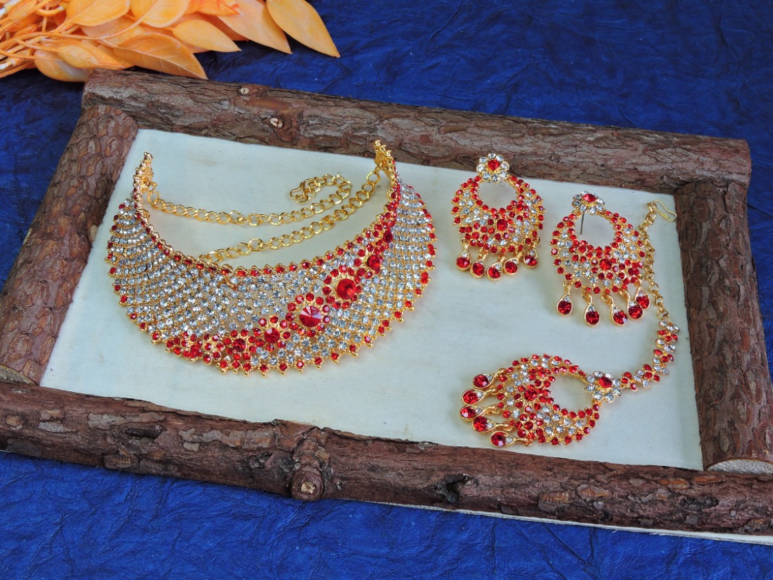 Product Details: 1 Necklace::1 Pair of Earring::1 Maang Tikka