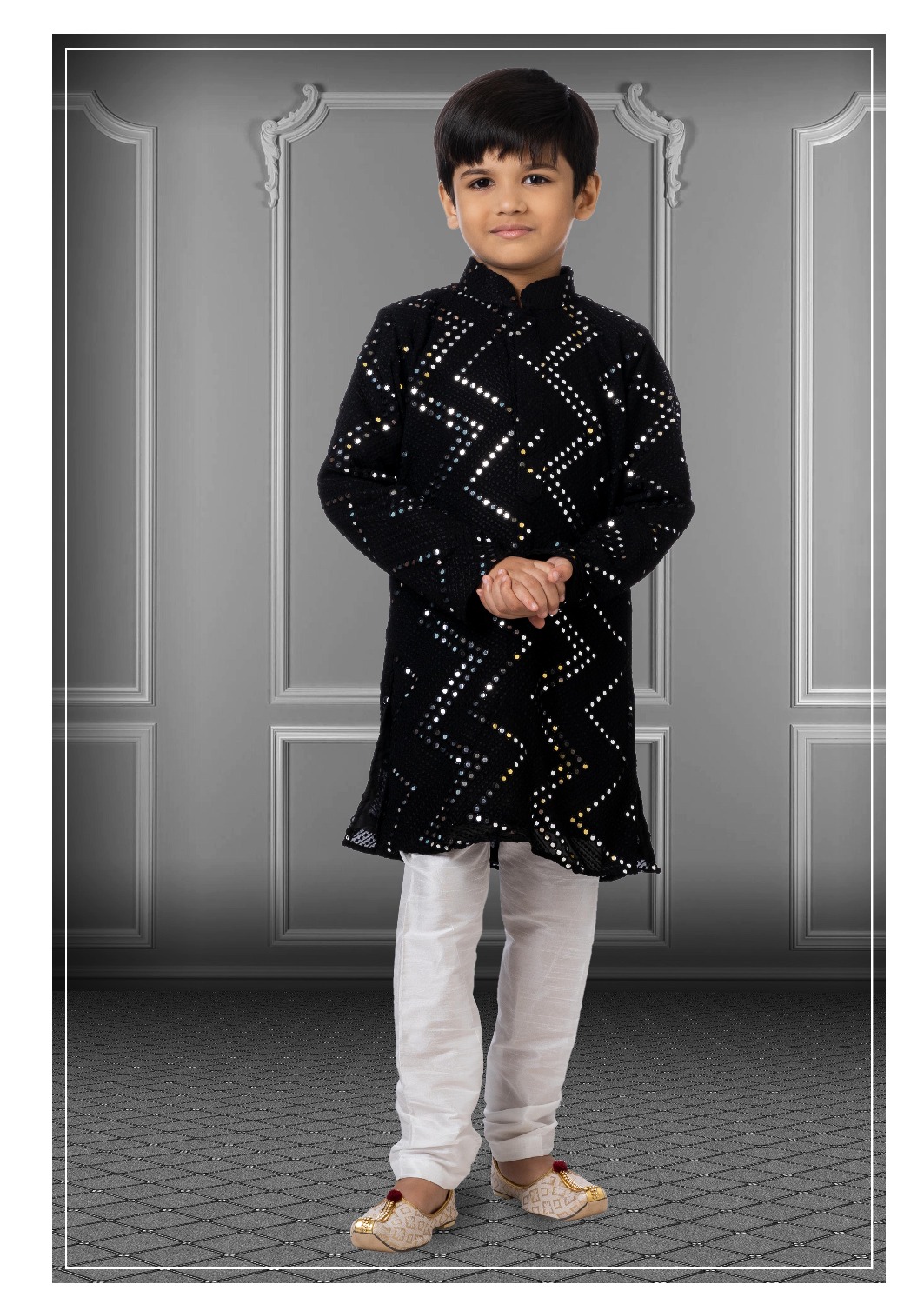 Exquisite Georgette Embroidered Black Kurta Pajama