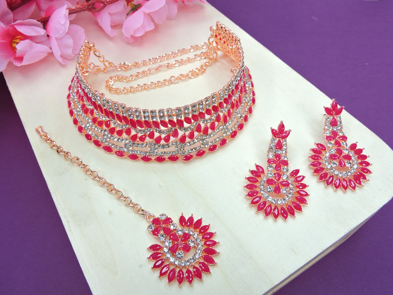 Product Details: 1 Necklace::1 Pair of Earring::1 Maang Tikka