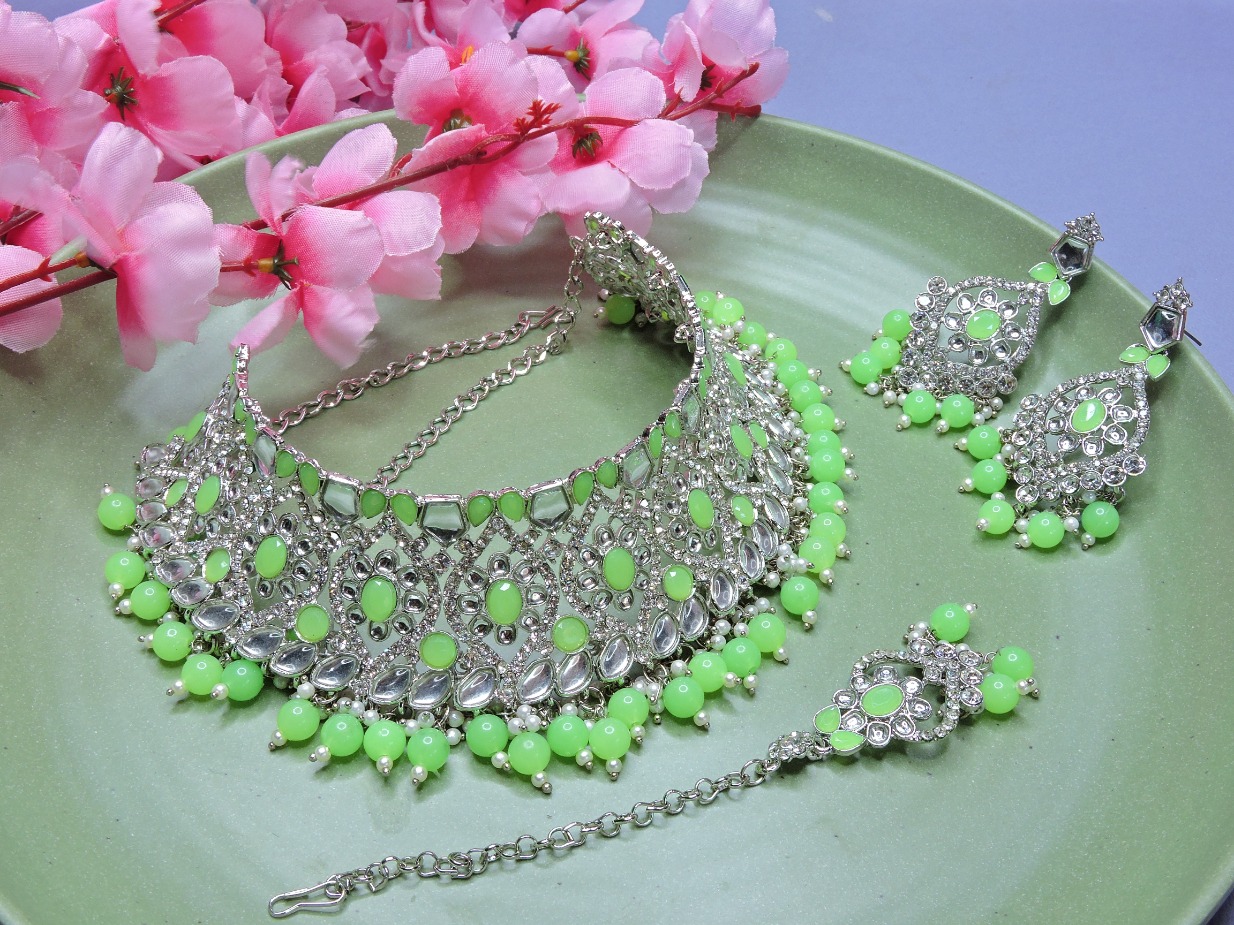 Product Details: 1 Necklace::1 Pair of Earring::1 Maang Tikka