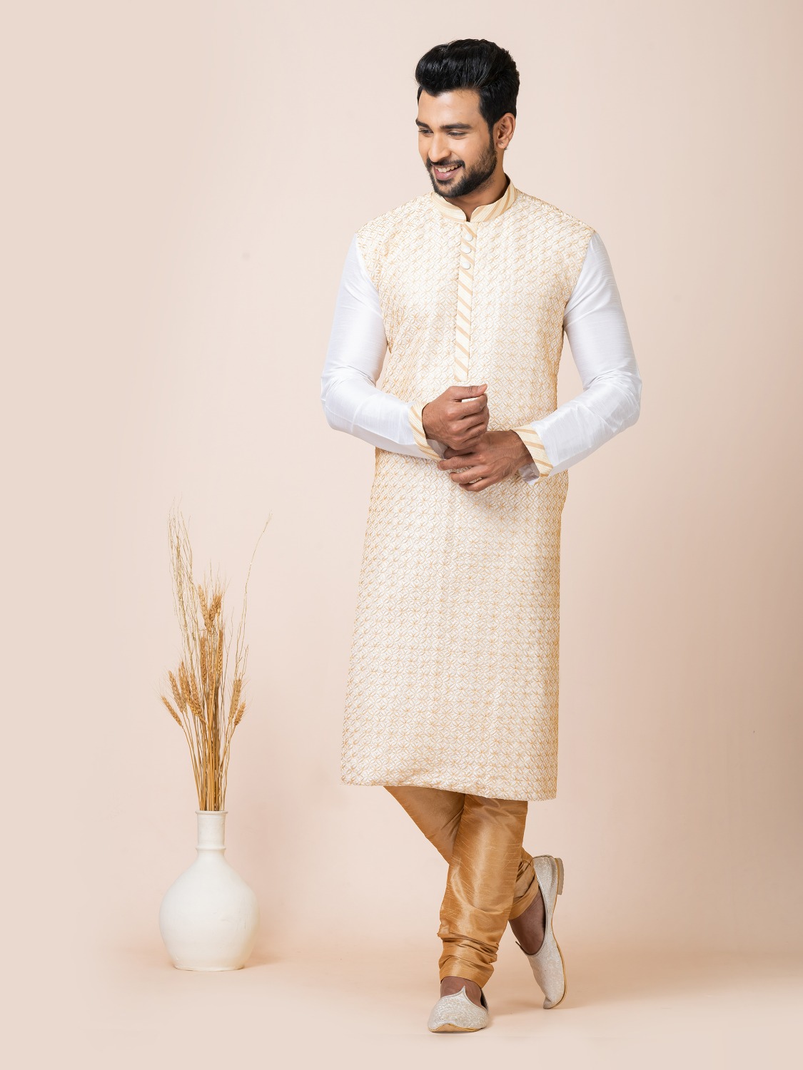 Good Looking Banarasi Dhupion White Kurta Pajama