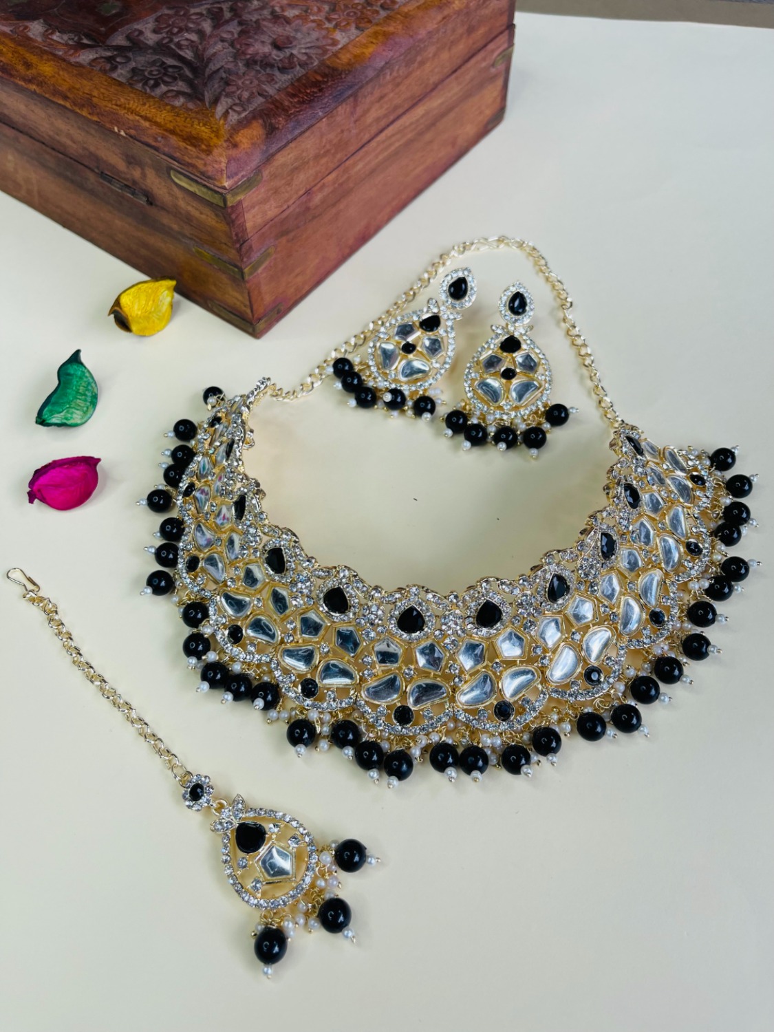 Product Details: 1 Necklace::1 Pair of Earring::1 Maang Tikka