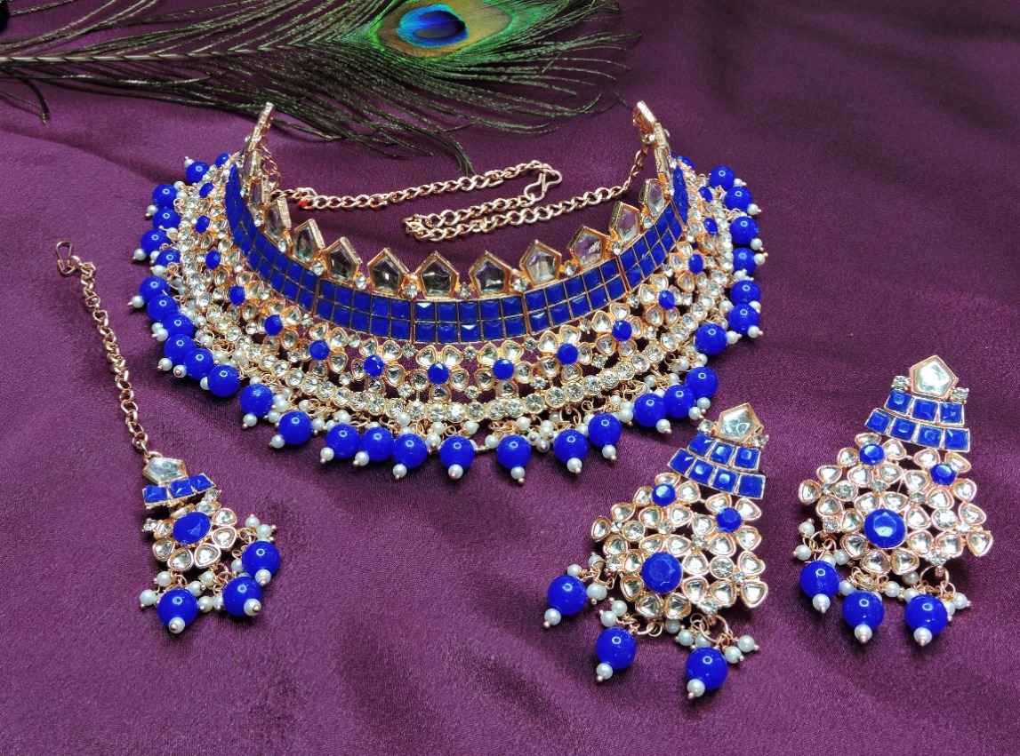 Product Details: 1 Necklace::1 Pair of Earring::1 Maang Tikka