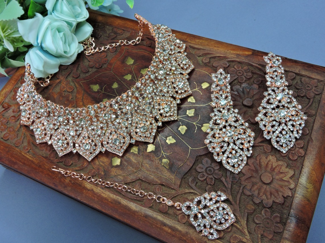 Product Details: 1 Necklace::1 Pair of Earring::1 Maang Tikka