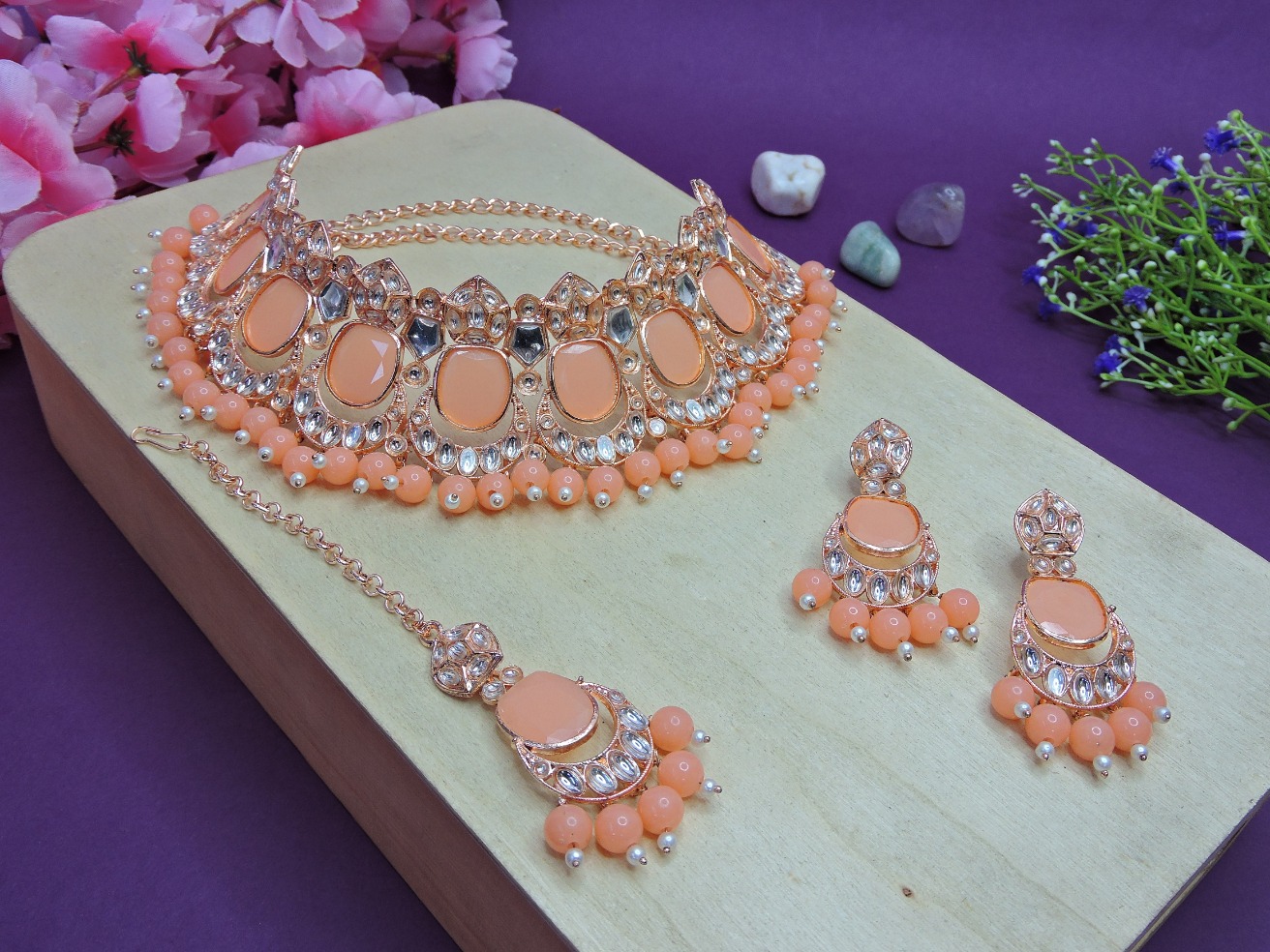 Product Details: 1 Necklace::1 Pair of Earring::1 Maang Tikka
