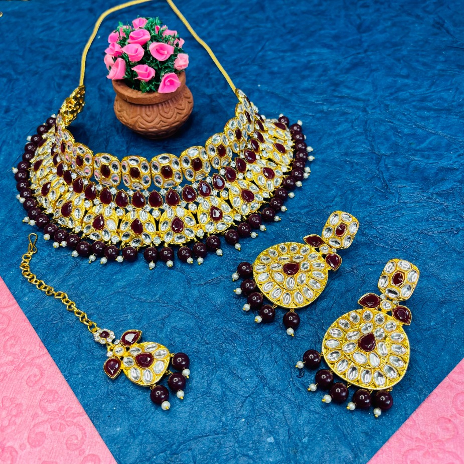 Product Details: 1 Necklace::1 Pair of Earring::1 Maang Tikka